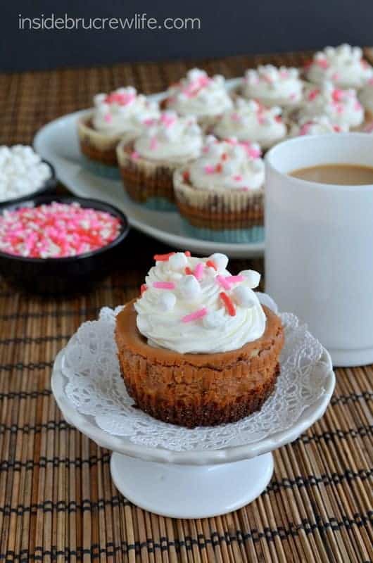 I've been drinking hot chocolate like there's no tomorrow, so these cheesecakes are calling my name. LOVE.