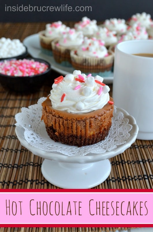 I love the hot chocolate addition, I bake some cookies for Christmas using hot chocolate powder and loved it, now you gave me ideas and I'm pretty sure I still have some leftover. Your individual size cheesecake are so cute!